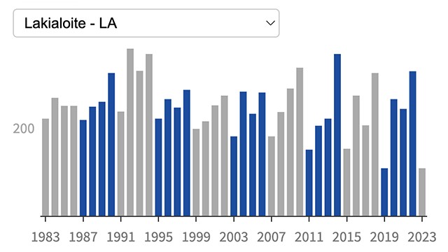 Kirjasto on pitkään tehnyt työtä eduskunnassa tuotettavan datan avaamiseksi kansalaisille. Jo viime vuosikymmenellä kirjasto oli synnyttämässä eduskunnan avoimen datan palvelua. Nyt 2020-luvulla olemme luoneet datan pohjalta infografiikkaa ja muita tietotuotteita sekä verkossa julkaistavaksi että eduskunnan virkatyön tueksi. Tietopalveluumme ohjautuvat eduskuntadataan liittyvät kysymykset ovat jo arkipäivää. Kevään 2023 suuri ponnistus oli koota eduskunnassa tuotettava tilastotieto yhdelle sivustolle.
