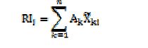 Kunkin talletuspankin i kokonaisriskiä kuvaava mittari RIi saadaan, kun lasketaan yhteen kunkin talletuspankin yksittäisten riskejä kuvaavien mittareiden lopulliset arvot, jotka on kerrottu kunkin yksittäisen riskejä kuvaavan mittarin painoarvolla Ak: