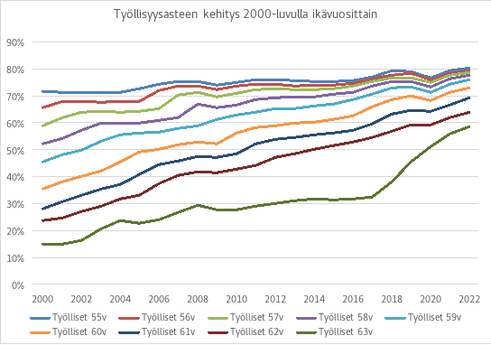 Alin vanhuuseläkeikä | 64,5 | 64,75 | 65 | 65 | 65 | Kytketty elinajan odotteeseen |