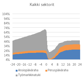 ) löytyvien joustojen keskiväliä ja siten edustaa keskimääräistä tulosta. Ansioturvaa koskevan jouston lisäksi on sovellettu Kyyrän (2020