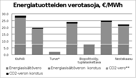 Lämmityspolttoaineiden hiilidioksidiveron korotus nykyisen 58 euron sijasta 62 euroon tonnilta tarkoittaisi sitä, että esimerkiksi kevyen polttoöljyn hiilidioksidivero nousisi noin 0,0043 eurosta megajoulelta noin 0,0046 euroon megajoulelta. Hiilidioksidiveron korotuksen tavoitteena on kannustaa vähäpäästöisten lämmityspolttoaineiden käyttöön ja parantaa maakaasun kilpailuasemaa erityisesti suhteessa kivihiileen. Energiasisältöveron korottaminen 0,45 eurolla megawattitunnilta tarkoittaisi, että energiasisältövero nousisi 0,00196 eurosta megajoulelta 0,00208 euroon megajoulelta.