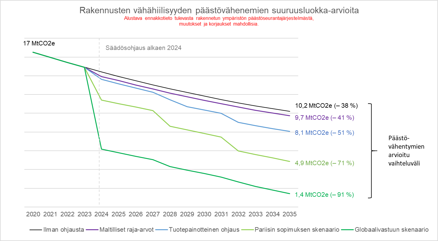 Rakennustuotteita koskevien tietojen lisäksi kansallisen päästötietokannan tulisi sisältää rakennuksen käytönaikaisen energian päästöjä ja niiden kehitystä kuvaavat tulevaisuuden tiedot. Nämä tiedot laadittaisiin siten, että oletukset eri energiamuotojen päästöjen kehityksestä pohjautuisivat Suomen pitkän aikavälin päästöjen kehitykselle laadittaville virallisille skenaarioille. Tietokannan olisi lisäksi sisällettävä tarvittavat tiedot kasvillisuuden arviointia varten. Näihin kuuluisivat tiedot sekä rakennuspaikalta poistettavan kasvillisuuden ilmastohaitoista että rakennuspaikalle tai rakennuksen päälle istutettavan kasvillisuuden ilmastohyödyistä. Kasvillisuuden tietoja voitaisiin tarvita esimerkiksi EU:n vihreän rahoituksen taksonomian mukaisessa rakennuksen elinkaariarvioinnissa tai rakennusten energiatehokkuusdirektiivin luonnoksen mukaisessa kasvihuonekaasujen poistumien arvioinnissa.