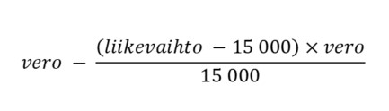 Yllä oleva kuvio esittää, paljonko yritykset maksavat veroa eri liikevaihtoluokissa verrattuna tilanteeseen, jossa alarajaa eikä alarajahuojennusta sovellettaisi. Esimerkiksi 19 500—20 000 euron vuosiliikevaihdon omaavat yritykset maksavat nykyisin noin 50 prosenttia vertailun kohteena olevasta verosta, kun muutosehdotuksen mukainen osuus olisi noin 33 prosenttia.