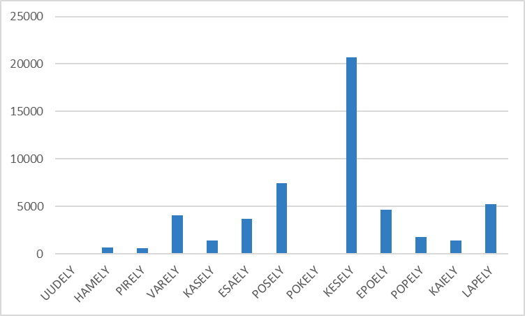 Sääksen kalanviljelylaitoksilla aiheuttamista vahinkojen perusteella on maksettu avustuksia vuosien 2012-2020 välillä eniten Keski-Suomen ELY-keskuksen alueella (kuva 2).