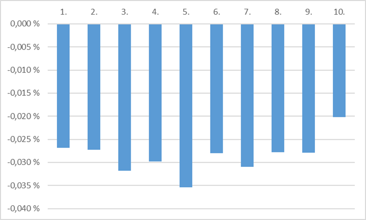 Kuva 2: Esitettyjen veronkorotusten vaikutukset tulokymmenysten lämmityskustannuksiin, suhteessa käytettävissä oleviin tuloihin