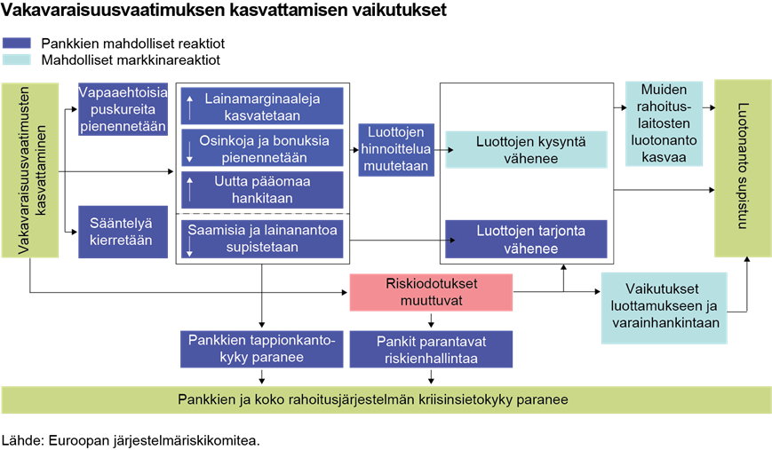 4 b §.Rahoitusjärjestelmän rakenteellisten ominaisuuksien perusteella määrättävän lisäpääomavaatimuksen määräämisen perusteet. Säännös vastaisi pääosin voimassa olevan lain 10 luvun 6 a §:ää luottolaitosdirektiivin muutetun 133 artiklan edellyttämin täsmennyksin. Lain 10 luvun luettavuuden parantamiseksi pykälien järjestystä on tarpeen muuttaa. Pykälän 1 momentin mukaan rahoitusjärjestelmän rakenteellisten ominaisuuksien perusteella määrättävän lisäpääomavaatimuksen määräämisen perusteena olisi rahoitusjärjestelmän vakaaseen toimintaan tai reaalitalouteen kielteisesti vaikuttavien riskien estäminen ja vähentäminen. Säännös perustuu luottolaitosdirektiivin muutetun 133 artiklan 1 kohtaan.