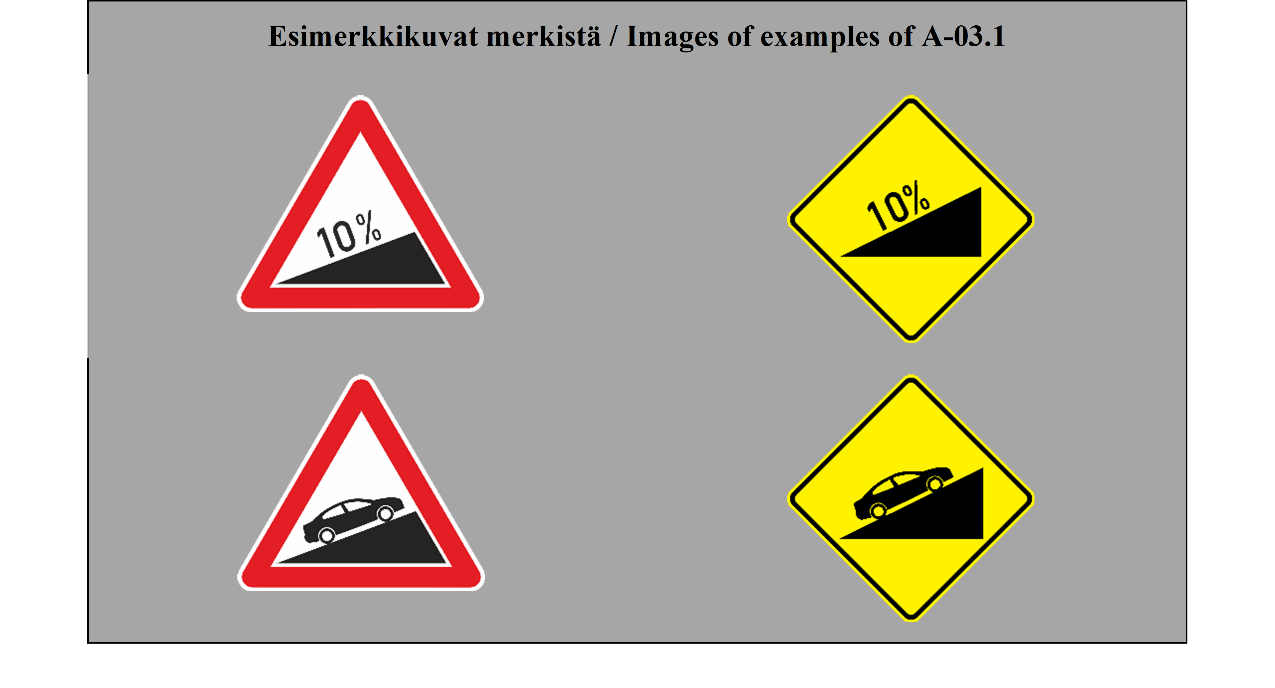 Liikennemerkkejä ja -opasteita koskevaa yleissopimusta täydentävän eurooppalaisen sopimuksen ratifioinnin yhteydessä Suomi on tehnyt sopimuksen 11 artiklan 3 kohdan nojalla ilmoituksen, jonka mukaan varaumat, jotka Suomi on tehnyt liikennemerkkejä ja -opasteita koskevan yleissopimuksen 18 artiklaan sekä 5 liitteen F-osan 6 kohtaan, koskevat myös eurooppalaista sopimusta. Lisäksi Suomi on tehnyt varauman, jonka mukaan Suomi varaa oikeuden käyttää vaarallista alamäkeä osoittavana liikennemerkkinä yleissopimuksen merkkiä A 2c merkin A 2a sijasta. Samoin jyrkkää ylämäkeä osoittavana merkkinä käytetään merkkiä A 3c merkin A 3a sijasta. Liitteen 22 kohtaan tehdyn varauman mukaan Suomi varaa oikeuden käyttää punaista vinoviivaa yleissopimuksen merkkejä C 3a - C 3k sekä C 3m - C 3n vastaavissa liikennemerkeissä.