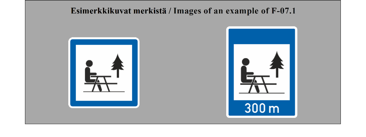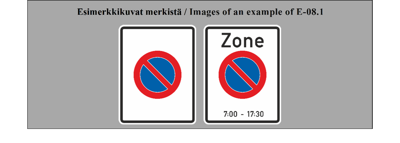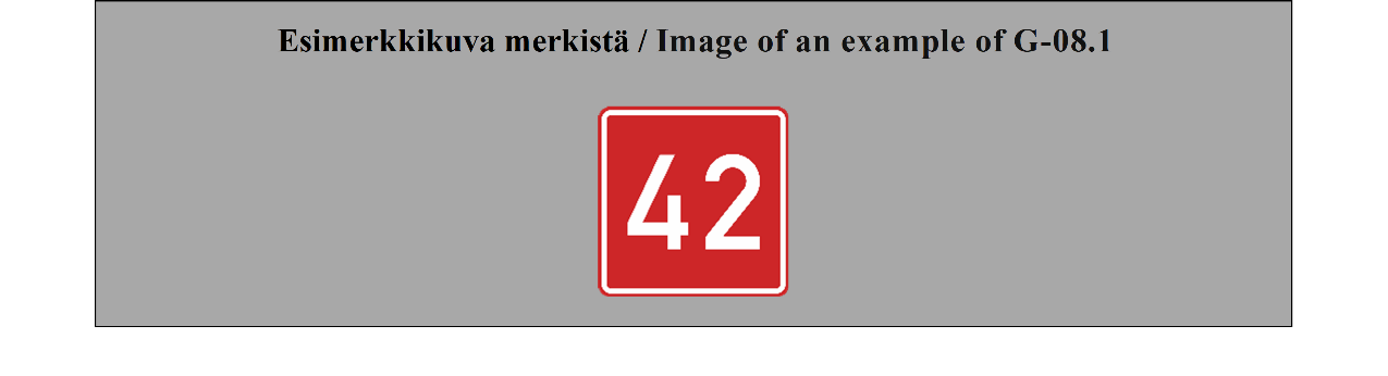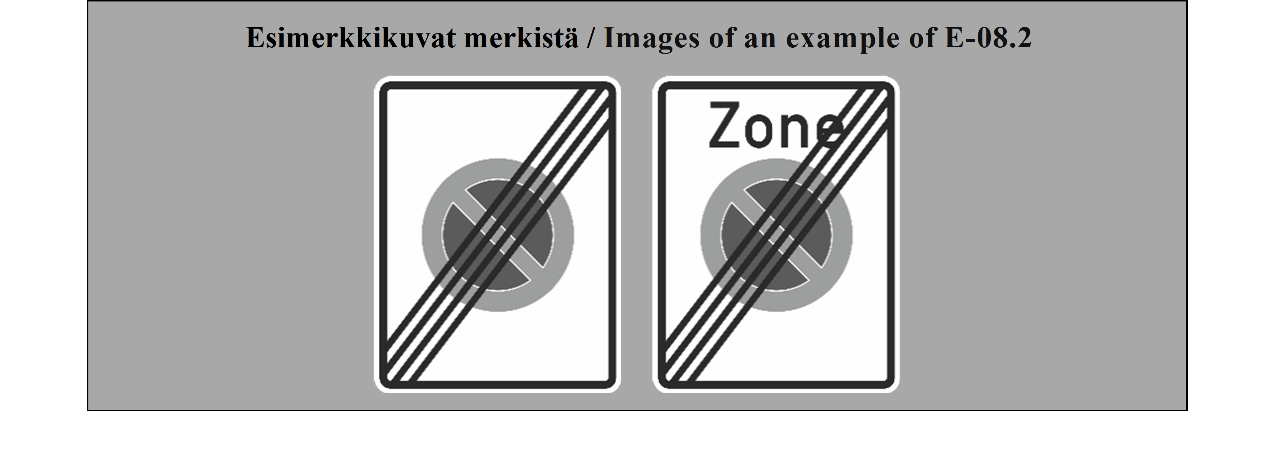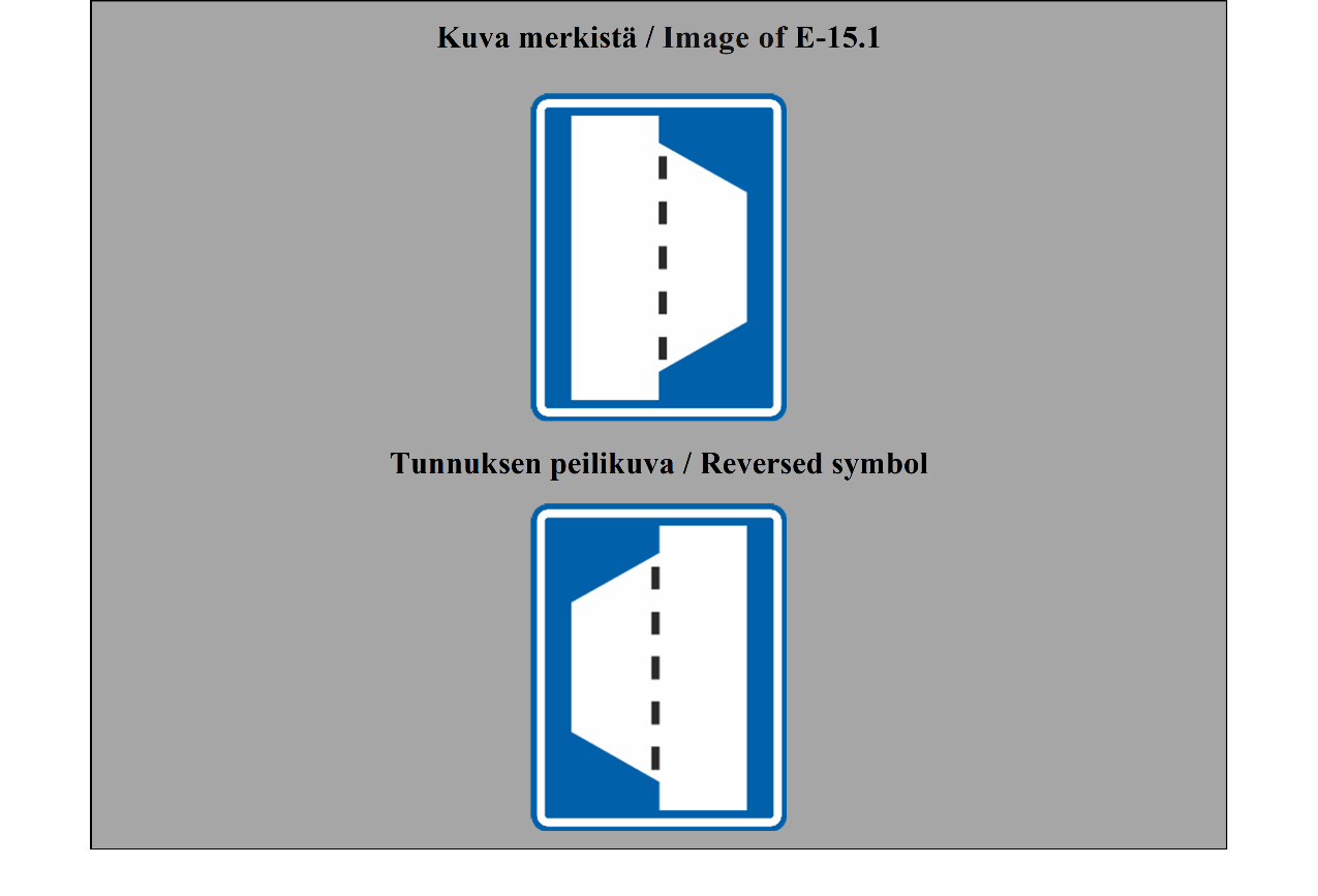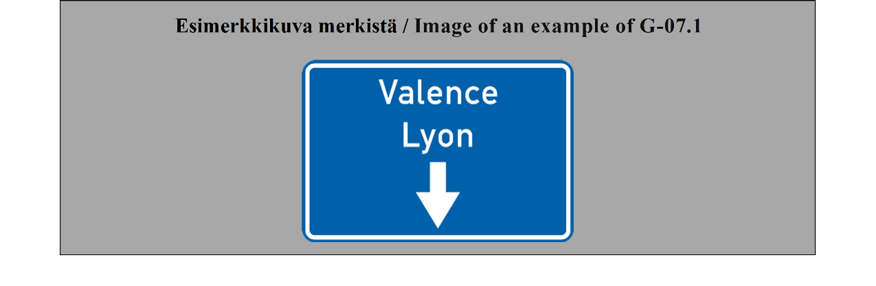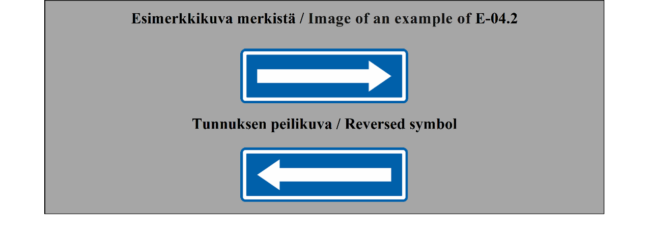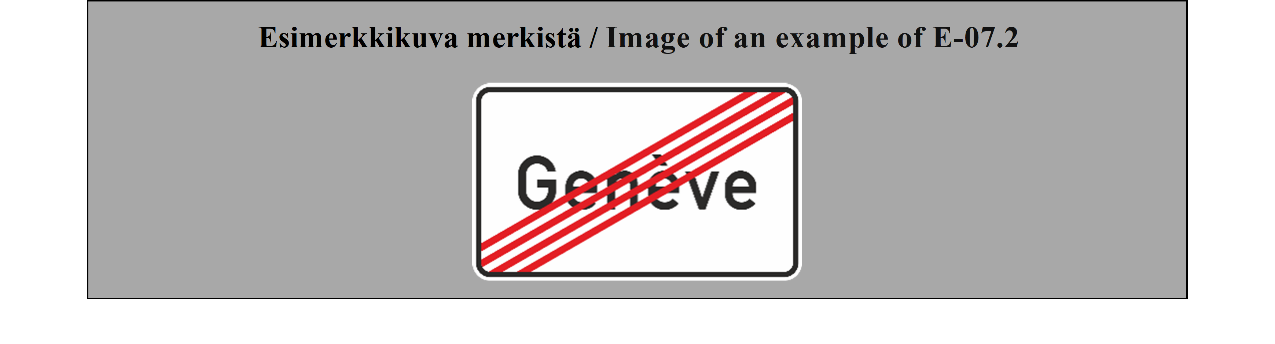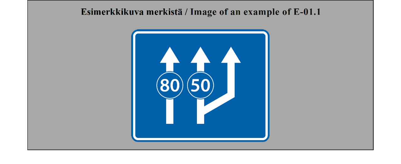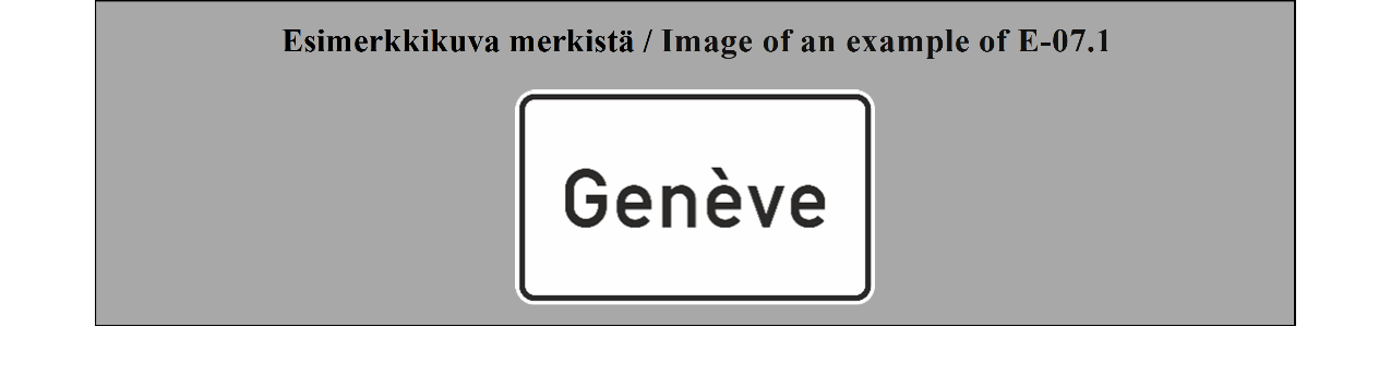 E-07.1, E-07.2, E-07.3, E-07.4, E-07.5, E-07.6 shall be in a dark colour on a white or light-coloured ground and the sign shall have a dark-coloured rim.