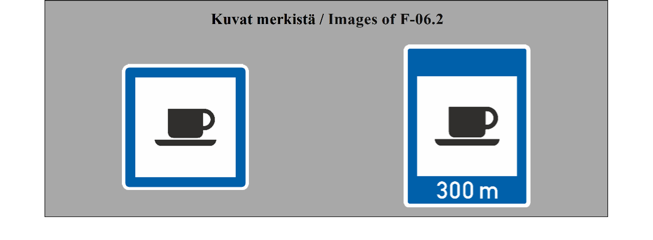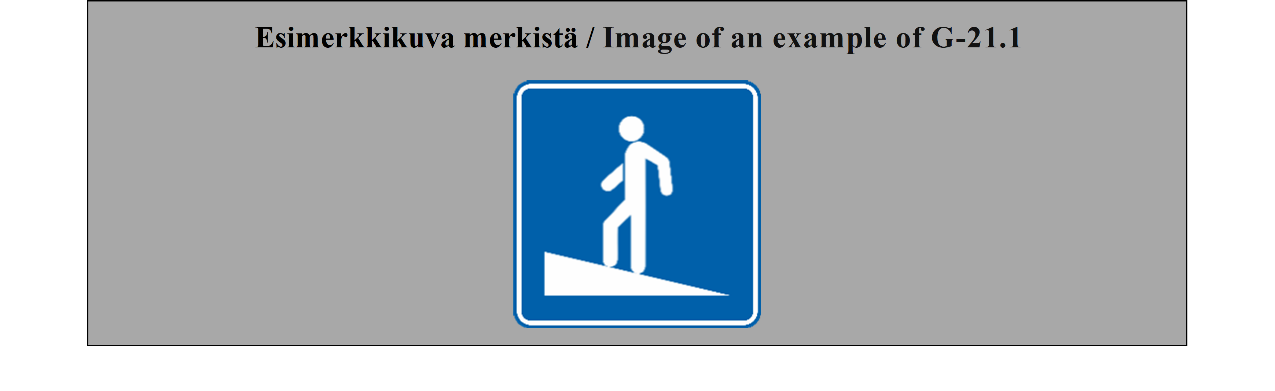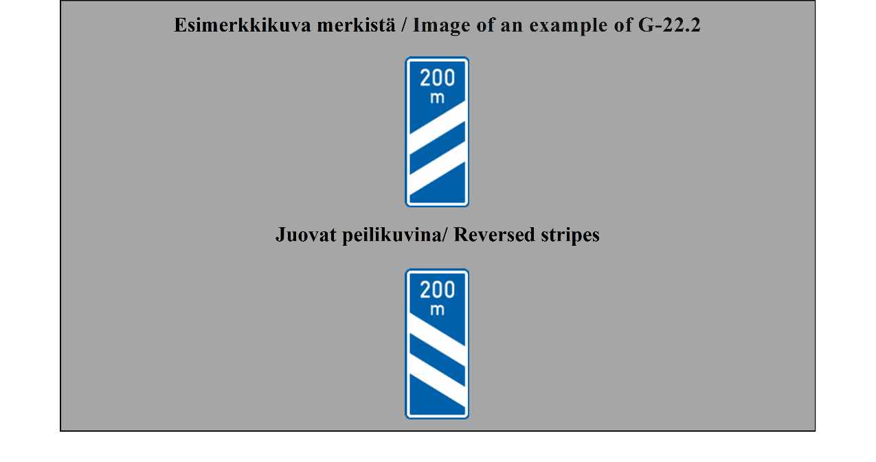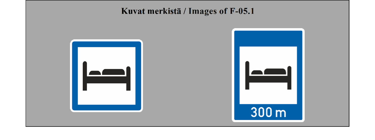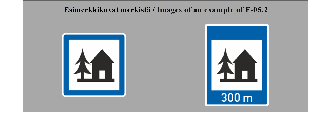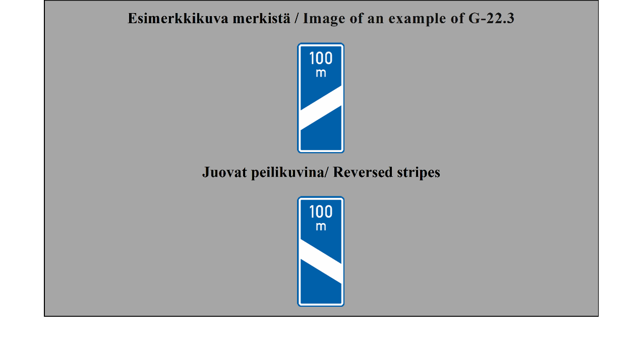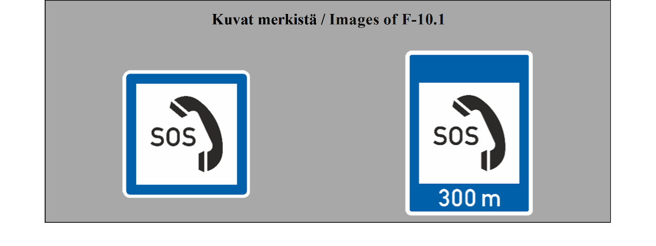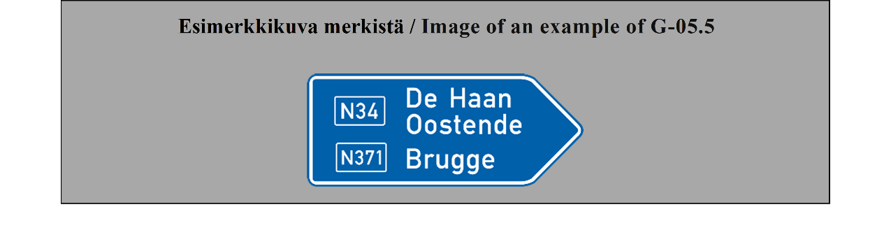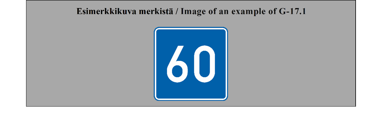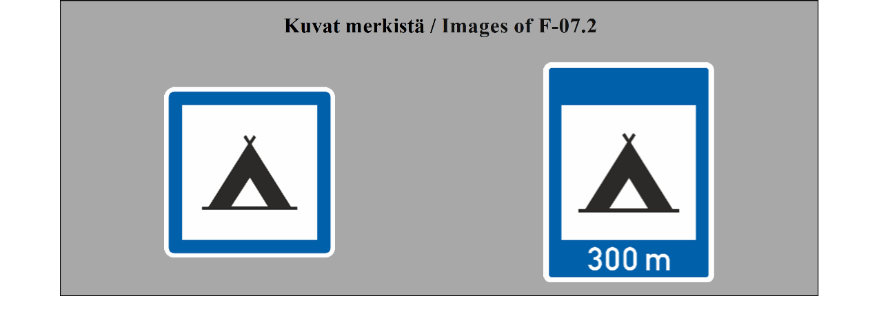 E-07.1, E-07.2, E-07.3, E-07.4, E-07.5, E-07.6 shall be in a dark colour on a white or light-coloured ground and the sign shall have a dark-coloured rim.