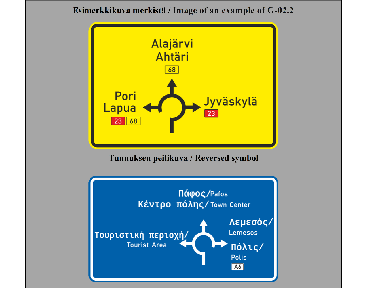 Kuudes varauma koskee liikennemerkkejä ja -opasteita koskevaa yleissopimusta täydentävää eurooppalaista sopimusta. Sopimuksen kohtaan 20 (Yleissopimuksen liitteeseen 1, G osaan, III jaksoon) esitetään varaumaa, jonka mukaan Suomessa paikannimikilvessä voi olla myös tumma tunnus tai teksti vaalealla pohjalla. Sopimuksessa hyväksytään vain vaalea tunnus tai teksti tummalla pohjalla. Varaumalla säilytettäisiin selkeäksi ja toimivaksi todettu liikenteenohjauslaitteeseen F27 liittyvä nykytila Suomessa.