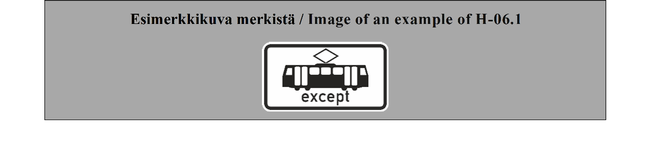 Suomi on lisäksi tehnyt varauman yleissopimuksen 5 liitteen F-osan 6 kohtaan (Linja-auto- tai raitiovaunupysäkkiä osoittavat merkit). Varauman mukaan Suomi varaa oikeuden käyttää linja-auto- ja raitiovaunupysäkkejä osoittavia merkkejä, jotka eroavat muodoltaan ja väriltään merkeistä E 19 ja E 20.