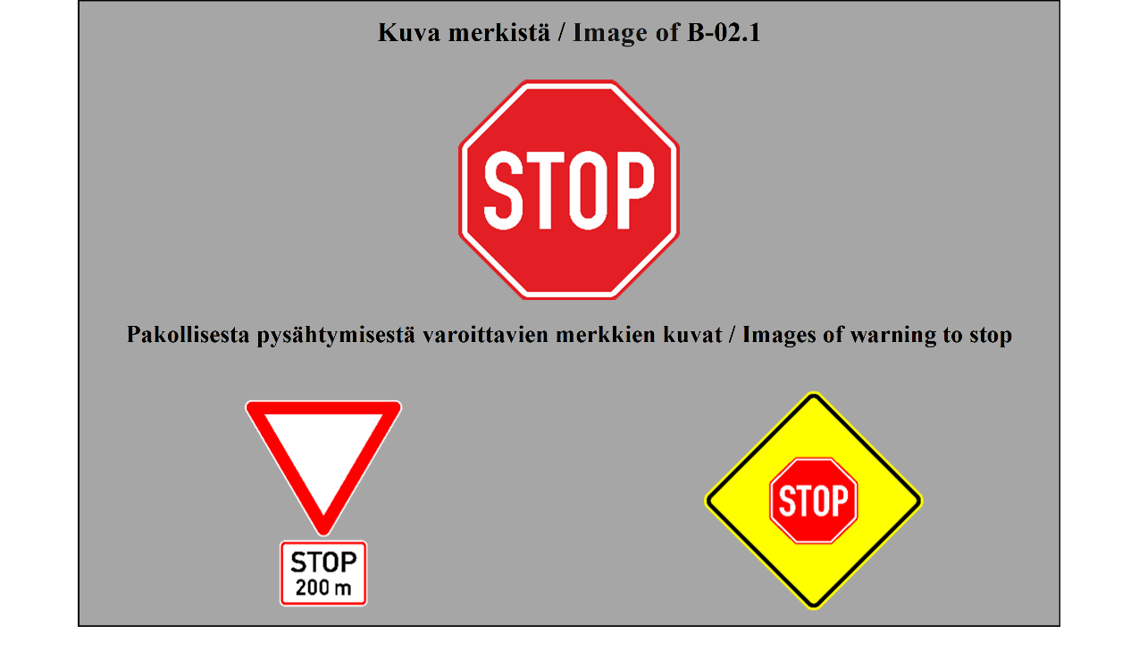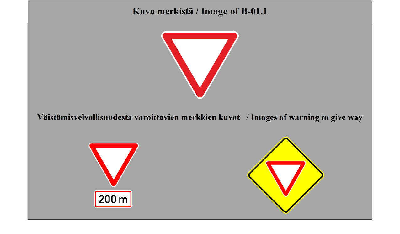 Liikenteenohjauslaitteiden käytöstä annetun valtioneuvoston asetuksen mukaan tätä merkkiä ei nykyisin tarvitse käyttää, mikäli sen sijaan käytetään merkkiä B5 tai B6. Valtioneuvoston asetus ei näin täysin vastaa sopimuksen määräystä. Tieliikennelain liitteen 3.2 mukaan merkillä B2 osoitetaan tienkohta, jossa merkillä B1 osoitettu etuajo-oikeus päättyy. Tieliikennelain säännöksen voidaan näin katsoa olevan sopusoinnussa sopimusmääräyksen kanssa.