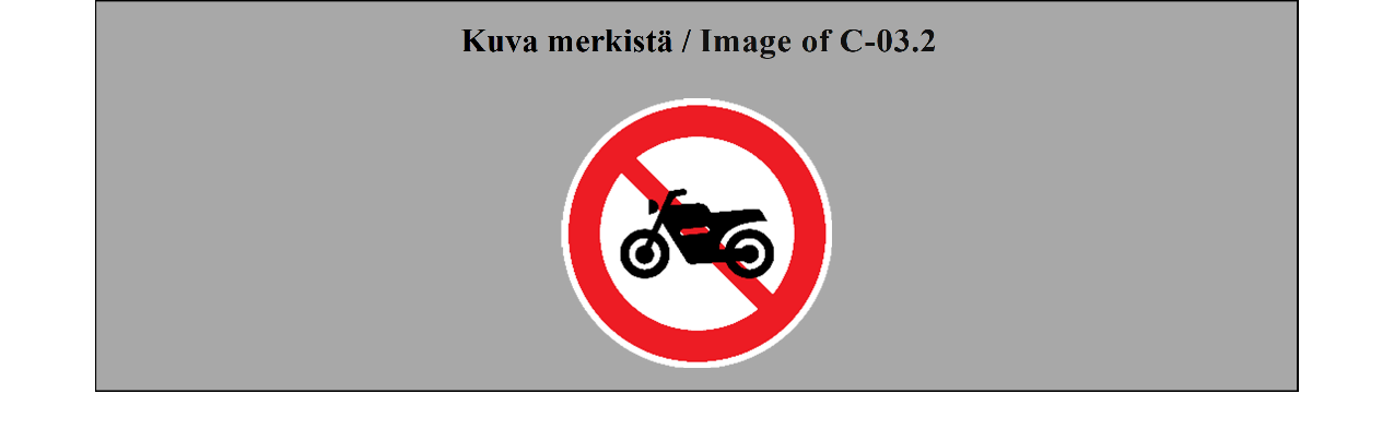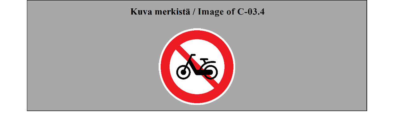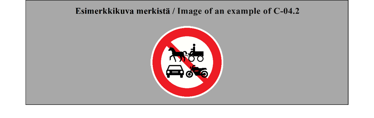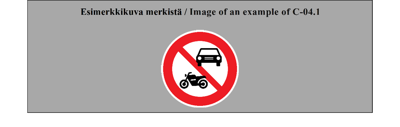Toisen varauman mukaan Suomi katsoo merkin C-04.1 osoittavan, että ajaminen on kielletty kaikilta moottorikäyttöisiltä ajoneuvoilta. Yleissopimuksen uusi sanamuoto olisi edellyttänyt kaikkien C2 merkkien päivittämisen siten, että niihin olisi lisätty myös mopon kuva, mikäli merkin vaikutus olisi haluttu ulottaa myös mopoihin. Varaumalla säilytettäisiin selkeäksi ja toimivaksi todettu liikenteenohjauslaitteeseen C2 liittyvä nykytila Suomessa.