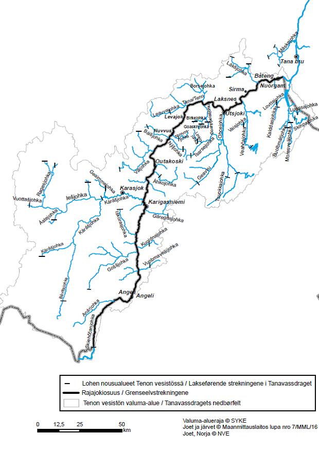 Tenojoki on yksi Euroopan tärkeimmistä Pohjois-Atlantin merilohen (Salmo salar) lohijoista. Suomen ja Norjan välisiä rajajokia ovat Tenojoen lisäksi sen jatkeena olevat Kietsimäjoki ja Inarijoki, jotka yhdessä muodostavat Tenojoen vesistöalueen. Jokien yhteispituus on noin 330 kilometriä, tästä noin 270 kilometriä rajaosuutta. Lohi voi vaeltaa Tenojoen vesistössä noin 1 200 kilometrin matkalla.