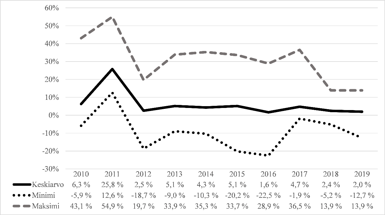 Energiaviraston valvontatietojen perusteella voidaan todeta, että asetettu raja on toiminut tarkoitetulla tavalla. Vuosina 2018—2019 korkeimmat hinnankorotukset ovat olleet 13,9 prosenttia. Keskimääräinen hinnankorotus on ollut vuonna 2018 2,4 prosenttia ja 2019 2,0 prosenttia. Säännösmuutosta edeltäneinä vuosina 2010-luvulla suurimmat korotukset ovat vaihdelleet noin 20 prosentista jopa lähes 55 prosenttiin. Kuitenkin korotusten keskiarvot vuosina 2012—2017 ovat olleet varsin maltillisia vaihdellen 1,6 ja 5,4 prosentin välillä. Korotuskattosäännös ei myöskään näytä aiheuttaneen verkonhaltijoiden tehtävien täyttämiselle tai niiden taloudelliselle asemalle erityisiä ongelmia. Asiaa korotuskattoa koskevalle säännökselle asetettujen tavoitteiden ja lainsäädännön yhtenäisyyden näkökulmasta tarkastellen voidaan arvioida, että ylärajan muuttamiselle matalammaksi tai korkeammaksi ei näyttäisi olevan tarvetta.