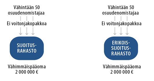 Sijoitusrahaston ja erikoissijoitusrahaston osuudenomistajien vähimmäislukumäärää ja itse rahaston vähimmäispääomaa koskevia vaatimuksia voidaan kuvata seuraavasti: