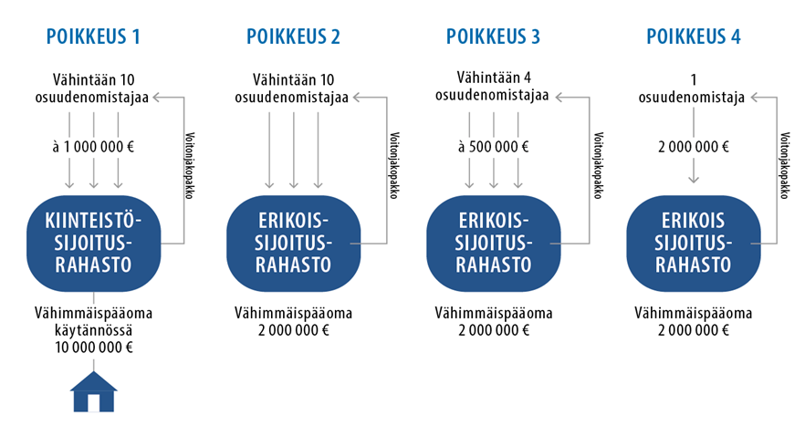 Erikoissijoitusrahastoja koskevia poikkeuksia voidaan kuvata seuraavasti: