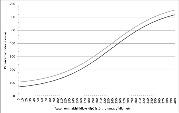 Perusvero määräytyy tyyppihyväksynnässä määritetyn hiilidioksidipäästön perusteella henkilöautolla, jonka kokonaismassa on enintään 2 500 kilogrammaa ja joka on otettu ensimmäisen kerran käyttöön 1 päivänä tammikuuta 2001 tai sen jälkeen, sekä henkilöautolla, jonka kokonaismassa on yli 2 500 kilogrammaa ja joka on otettu ensimmäisen kerran käyttöön 1 päivänä tammikuuta 2002 tai sen jälkeen. Pakettiauton perusvero määräytyy hiilidioksidipäästön perusteella, jos auto on otettu ensimmäisen kerran käyttöön 1 päivänä tammikuuta 2008 tai sen jälkeen.