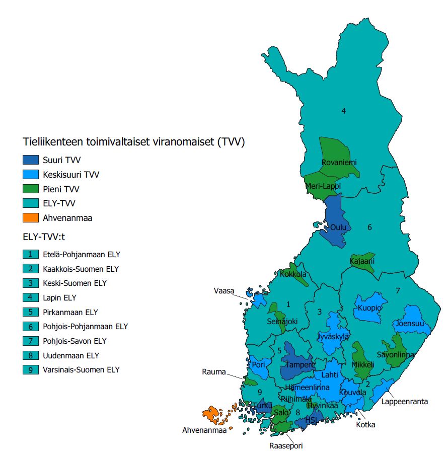 Palvelusopimusasetuksessa tarkoitetut toimivaltaiset viranomaiset on määritelty kansallisesti liikennepalvelulain 181 ja 182 §:ssä, joista ensimmäisessä pykälässä on määritelty tieliikenteen toimivaltaiset viranomaiset ja jälkimmäisessä pykälässä rautatieliikenteen toimivaltaiset viranomaiset. Liikennepalvelulain 182 §:n mukaan palvelusopimusasetuksessa tarkoitettuja rautatieliikenteen toimivaltaisia viranomaisia ovat liikenne- ja viestintäministeriö ja omalla alueellaan Helsingin seudun liikenne –kuntayhtymä, jäljempänä HSL . HSL on kuntayhtymä, jonka jäsenkuntia ovat Helsinki, Espoo, Vantaa, Kauniainen, Kerava, Sipoo, Tuusula, Kirkkonummi ja Siuntio. HSL vastaa Helsingin seudun liikennejärjestelmäsuunnitelman laatimisesta, suunnittelee ja järjestää toimialueellaan joukkoliikenteen ja edistää sen toimintaedellytyksiä. HSL hankkii myös linja-auto, raitiovaunu-, metro-, lautta- ja lähijunaliikenteen palvelut, hyväksyy joukkoliikenteen taksa- ja lippujärjestelmän sekä lippujen hinnat, vastaa joukkoliikenteen markkinoinnista ja matkustajainformaatiosta ja järjestää lippujen myynnin. HSL vastaa myös matkalippujen tarkastuksesta. HSL:n järjestämä junaliikenne muodostaa alueen muun joukkoliikenteen kanssa kokonaisuuden, mikä palvelee laajasti ihmisten liikkumistarpeita pääkaupunkiseudulla. Verrattuna tieliikenteen toimivaltaisiin viranomaisiin, rautatieliikenteen toimivalta-alueet ovat olleet vakiintuneet, eikä liikenne- ja viestintäministeriö ole viime vuosien aikana saanut ehdotuksia uusista toimivaltaisista viranomaisista tai muista toimivalta-alueiden muutoksista rautatieliikenteessä. Tieliikenteen viranomaisten toimivalta-alueisiin tehtävät muutokset ovat suhteellisen yleisiä ja niihin on vakiintuneet prosessit.