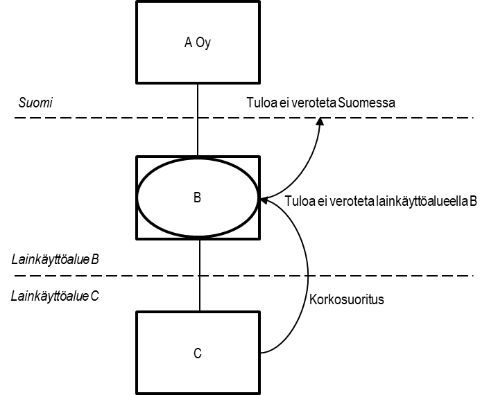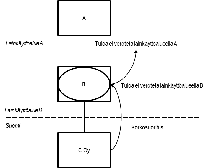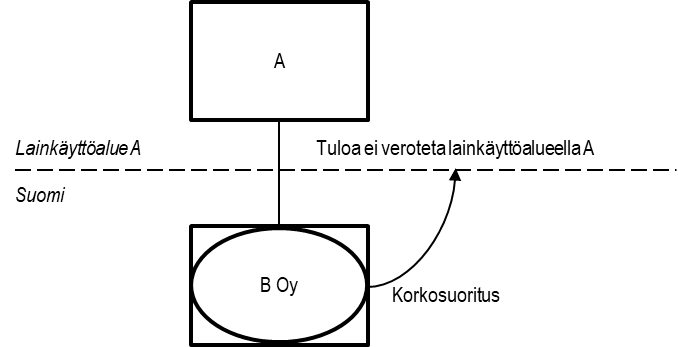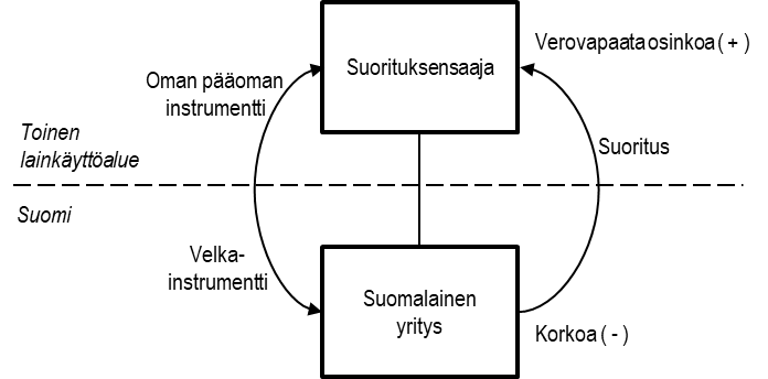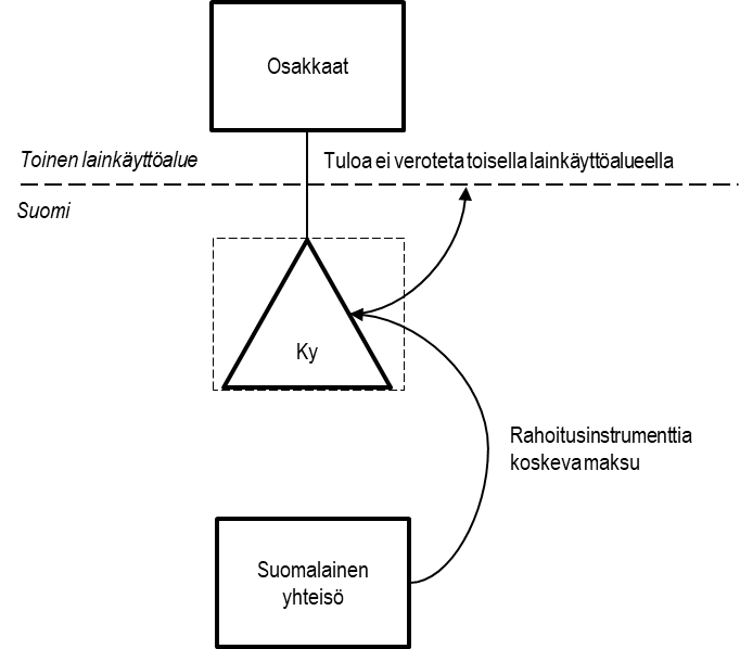 Rahoitusvälineen perusteella suoritettu meno ei ole vähennyskelpoinen siltä osin kuin vastaava tulo ei sisälly veropohjaan suorituksensaajan lainkäyttöalueella tai muulla lainkäyttöalueella, jolla tulo katsotaan saaduksi. Meno on vähennyskelvoton kuitenkin vain, jos verokohtelun eroavuus johtuu siitä, että rahoitusvälineen tai siihen perustuvan suorituksen luonnehdinta on suorituksensaajan lainkäyttöalueen tai edellä tarkoitetun muun lainkäyttöalueen verotuksessa erilainen kuin Suomen verotuksessa.