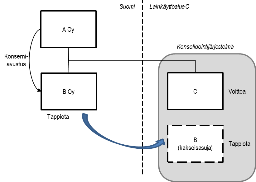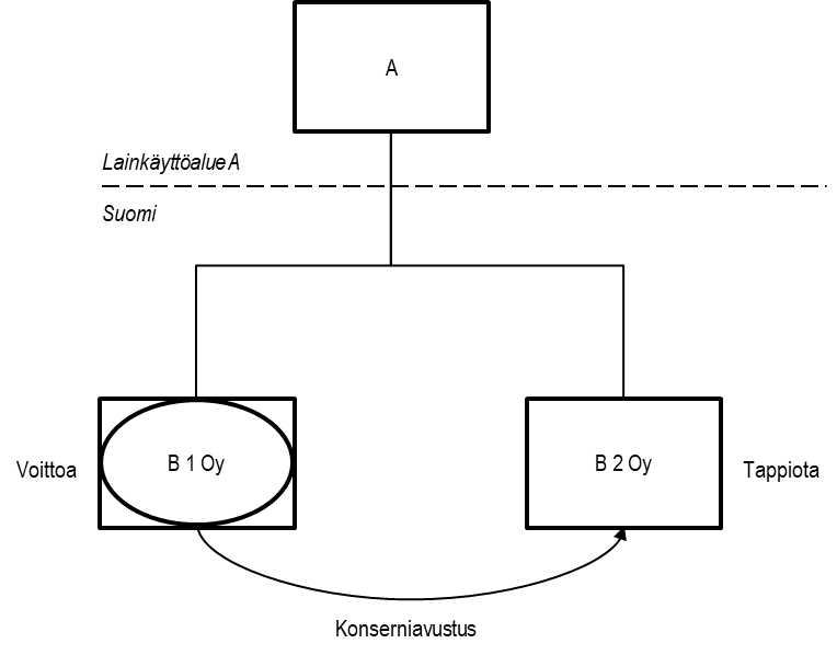 Direktiivissä ja OECD:n raportissa tarkoitettu hybridisiirtoon perustuvan lähdeveron hyvittämisen rajaamista koskeva säännös voisi soveltua esimerkiksi seuraavassa tilanteessa: