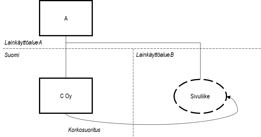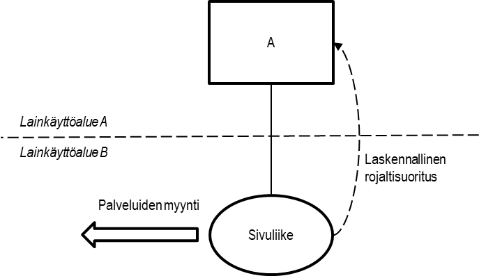 Suomen kansallisessa verolainsäädännössä ei ole nimenomaisia säännöksiä yrityksen eri osien välisistä laskennallisista suorituksista eli yrityksen sisäisistä suorituksista. Laskennallisilla suorituksilla tarkoitetaan suorituksia, jotka konstruoidaan verotusta tai yrityksen sisäistä laskentaa varten. Laskennallisia suorituksia käytetään esimerkiksi silloin, kun sivuliike myy yrityksen palveluja ulkopuolisille ja tämä toiminta vaatii esimerkiksi yrityksen omistaman aineettoman omaisuuden hyödyntämistä. Tilanteesta riippuen pääliikkeen ja sivuliikkeen välille voidaan tällöin konstruoida aineettoman omaisuuden käytöstä maksettava rojalti.
