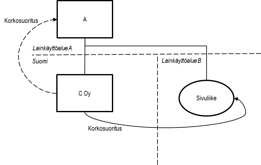 Ratkaisussa KHO 2016:71 oli myös kyse korkomenojen vähennysoikeudesta. Siinä sivuliikkeellä ei ollut oikeutta elinkeinoverolain 12 §:n ja 18 §:n nojalla vähentää verotuksessaan korkomenoja, jotka olivat syntyneet A-konsernin konsernin sisäisessä yritysjärjestelyssä. Järjestelyssä A A/S:n täysin omistama tanskalainen tytäryhtiö AA A/S perusti Suomeen AAA-nimisen sivuliikkeen. A A/S siirsi kaupalla suomalaisen liiketoimintayhtiön B Oy:n osakkeet AA A/S:lle kauppakirjalla, jossa osapuolina olivat myyjäyhtiö ja ostajayhtiön Suomen sivuliike. Kaupan jälkeen osakkeita oli käsitelty ostajayhtiön kirjanpidossa sivuliikkeeseen kuuluvana omaisuutena. Osakkeiden kauppahinta oli 650 miljoonaa euroa ja kauppa rahoitettiin kohdentamalla sivuliikkeeseen osakepääomaa 150 miljoonaa euroa ja velkapääomaa 500 miljoonaa euroa. Velkapääoma oli A A/S:ltä sivuliikkeen nimissä otettu laina. Sen korkokannaksi oli sovittu 6,9 prosenttia ja erääntymispäiväksi 31.12.2011. Sivuliike oli maksanut korkoa 5 654 166,66 euroa vuonna 2006 ja 34 500 500 euroa erikseen kunakin vuonna 200—2010. Lisäksi B Oy oli vuodesta 2006 lähtien antanut sivuliikkeelle konserniavustusta ja sillä oli katettu sivuliikkeelle kohdennetusta velasta aiheutuneet korkokulut. Asiassa katsottiin, että B Oy:n osakkeiden tuoma määräysvalta kuului AA A/S:n hallitukselle tai konsernin emoyhtiölle. Näin ollen B Oy:n osakkeiden ei voitu katsoa olleen sivuliikkeessä harjoitetun elinkeinotoiminnan pysyvässä käytössä eikä osakkeita voitu katsoa sivuliikkeeseen kuuluviksi varoiksi. Tämän johdosta korkein hallinto-oikeus katsoi, ettei osakkeita tullut pitää sivuliikkeeseen kuuluvina varoina, eikä osakkeiden hankinnasta johtuvaa velkaa ollut pidettävä sivuliikkeen velkana eikä velan korkoja sivuliikkeen verotuksessa vähennyskelpoisina menoina.