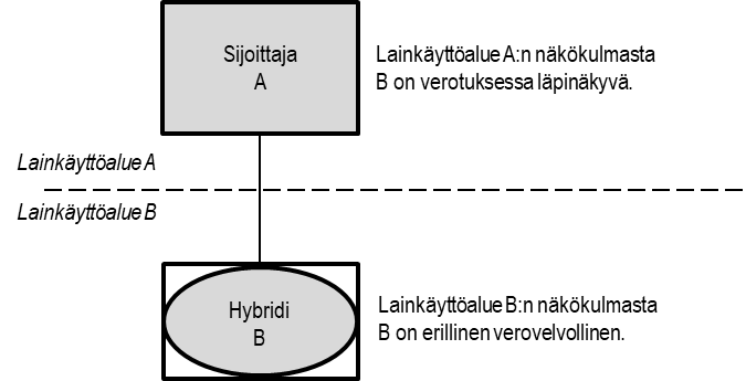 Kansallisessa sääntelyssä ei nykyisin ole nimenomaisia säännöksiä siitä, että esimerkiksi suomalaisen omistaman ulkomaisen läpinäkyvän yhtiön tuloa verotettaisiin Suomessa eikä lainsäädännössä oteta huomioon näihin tilanteisiin liittyviä erityispiirteitä. Nykyisen tapauskohtaiseen arviointiin perustuvan verokohtelun seurauksena on periaatteessa ollut mahdollista, että Suomessa on kohdeltu yhteisönä sellaista ulkomaista yksikköä, jota sen omassa sijaintivaltiossa on kohdeltu yhtymänä tai muuna verotuksellisesti läpinäkyvänä rakenteena. Mikäli tällaisessa tilanteessa ulkomaiselle yksikölle on maksettu suoritus, joka ei sisälly sen veropohjaan eikä myöskään sen suomalaisen omistajan veropohjaan, kyse olisi direktiivissä tarkoitetusta verokohtelun eroavuudesta, jonka hybridielementti on seurausta yksikön erilaisesta luokittelusta Suomessa ja yksikön sijaintivaltiossa.