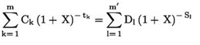 Perusyhtälö, joka määrittelee todellisen vuosikoron ja osoittaa vuositasolla yhtäläisyyden yhtäältä luoton nostoerien summan nykyarvon ja toisaalta takaisinmaksujen ja maksujen summan nykyarvon välillä, on seuraava:
