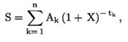 missä S on nykyarvoiksi muutettujen rahavirtojen saldo. Jos rahavirrat halutaan säilyttää tasapainossa, S:n arvo on nolla.