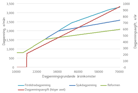 Den föreslagna ändringen av beräkningsformeln för sjukdagpenning och rehabiliteringspenning sänker de tillgängliga inkomsterna i de familjer där en förälder får de nämnda förmånerna. Ändringen gäller nivån på förmånerna för dem som tjänar över 27 633 euro per år, varvid den dock inte hänför sig till mottagarna av sjukdagpenning och rehabiliteringspenning med de allra lägsta inkomsterna.