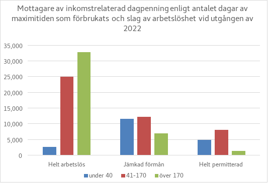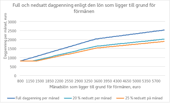Den genomsnittliga lön som låg till grund för inkomstrelaterad dagpenning var år 2022 något över 2 600 euro och medianlönen cirka 2 400 euro. Till grund liggande löner som låg under 1 000 euro fanns det lite av, cirka 0,6 procent av mottagarna. Inkomstrelaterad dagpenning som grundar sig på en lön på 1 000 euro uppgår när den betalas till fullt belopp till cirka 40 euro per dag, alltså cirka 860 euro per månad, vilket är endast något mer än grunddagpenningen (37,21 euro per dag och cirka 800 euro per månad). Av dem som fick inkomstrelaterad dagpenning hade knappt nio procent en till grund liggande lön på under 1 500 euro (motsvarar en dagpenning på cirka 50 euro, dvs. knappt 1 100 euro per månad).