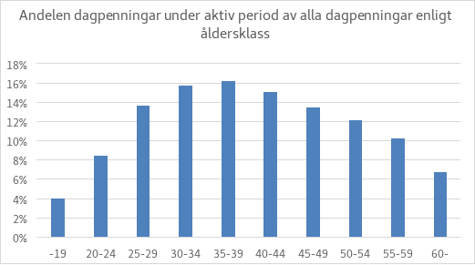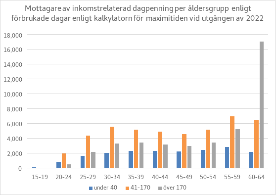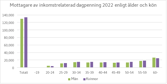 År 2022 betalades inkomstrelaterad dagpenning till sammanlagt drygt 260 000 personer, till ett sammanlagt belopp av cirka 1,81 miljarder euro. Den genomsnittliga inkomstrelaterade dagpenningen år 2022 var 65,76 euro per dag, det vill säga något över 1 400 euro per månad. Medelvärdet blir något lägre på grund av de jämkade dagpenningarna. Barnförhöjningen och den förhöjningsdel som betalas under aktiv tid höjer medelvärdet. Medelvärdet för dagpenning som betalades till fullt belopp var cirka 77 euro per dag, alltså cirka 1 650 euro per månad.