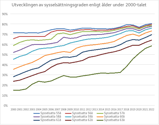 I syfte att uppnå målet har regeringen beslutat om genomförande av en omfattande helhet av strukturella reformer. I avsnitt 4.3 i regeringsprogrammet, Social trygghet som uppmuntrar till arbete, fastställs att den sociala tryggheten ska reformeras så att systemet blir enklare och i högre grad uppmuntrar till arbete. I denna proposition föreslås det att lagen om utkomstskydd för arbetslösa ändras så att följande handlingslinjer som ingår i denna helhet fullföljs: nivån på den inkomstrelaterade dagpenningen graderas, lönesubventionerat arbetet tillgodoräknas i fortsättningen inte i löntagares arbetsvillkor och vissa åldersrelaterade undantag slopas. De åldersrelaterade undantag som enligt förslaget ska slopas är undantagsregeln för omräkning av den inkomstrelaterade dagpenningen för personer som fyllt 58 år, rätten till garanterat arbete och tillgodoräknandet av sysselsättningsfrämjande service i arbetsvillkoret samt den skyddsregel för nivån på den inkomstrelaterade dagpenningen som ansluter till detta.