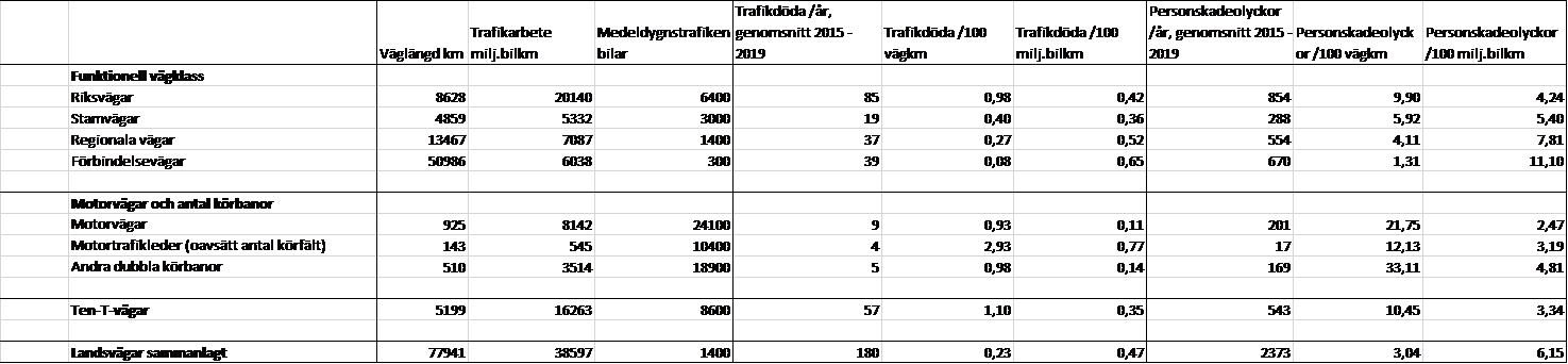 - olycksdata (antalet omkomna och antalet allvarligt skadade)