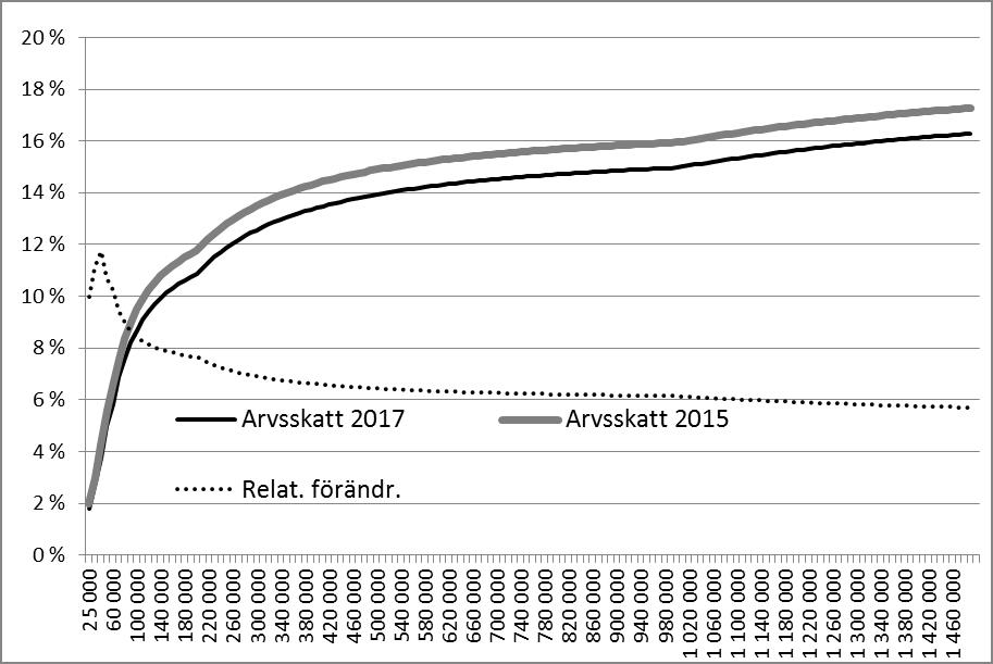 Vid arvs- och gåvobeskattningarna 2015 tillämpades bestämmelserna om skattelättnad på dryga 400 arvtagare och dryga 3 600 gåvotagare. Den sammanlagda skattelättnaden var omkring 141 miljoner euro.
