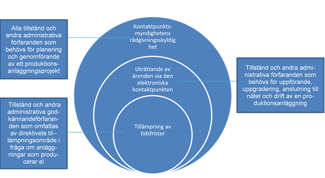För att samordningen av förfarandena, den s.k. principen om ett enda serviceställe, ska kunna införas effektivt i fråga om miljörelaterade förfaranden krävs det att myndighetskontakterna kan skötas elektroniskt. Regionförvaltningsverket (nedan även RFV) är samordnande myndighet, om samordningen gäller behandlingen av ett tillstånd enligt vattenlagen eller ett sådant tillstånd enligt miljöskyddslagen som ska avgöras av den myndigheten. I andra fall är det den kommunala miljövårdsmyndigheten som är samordnande myndighet. För den som ansöker om tillstånd betyder en modell med ett enda serviceställe att ansökan om olika tillstånd och handläggningen av ansökningarna sker samordnat, även om ansökningarna handläggs av olika behöriga myndigheter.