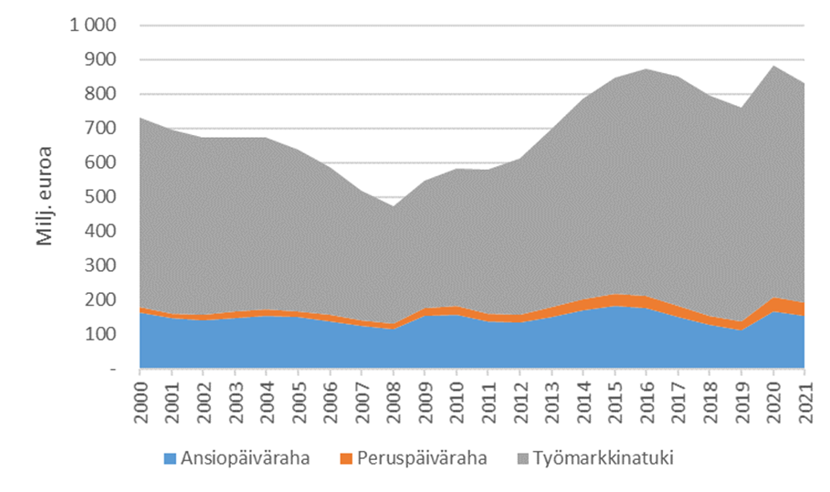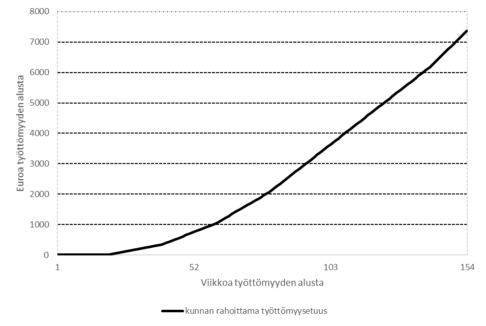 Det föreslås att bestämmelserna om finansiering av arbetslöshetsförmåner ses över så att kommunen får ett mer omfattande finansieringsansvar. Det föreslagna finansieringsansvaret ska förutom arbetsmarknadsstödet omfatta även grunddagpenningen och den inkomstrelaterade dagpenningens grunddel. Finansieringsansvaret föreslås inledningsvis uppgå till 10 procent – efter att den arbetssökande har fått arbetslöshetsförmån för 100 dagar – och öka stegvis ju längre arbetslösheten varar. Som mest uppgår kommunens föreslagna andel till 50 procent, vilket sker efter att den arbetssökande har fått förmån för 700 dagar. Enligt förslaget ska kommunens finansieringsansvar dessutom inte avbrytas om en person deltagit i sysselsättningsfrämjande service och får arbetslöshetsförmån för den tiden. Enligt förslaget ska kommunen däremot inte finansiera arbetsmarknadsstödet för personer som omfattas av internationellt skydd och därmed jämställbara invandrare under de tre år som följer efter den första anteckningen om hemkommun. När det gäller andra invandrare föreslås kommunen vara undantagen det finansieringsansvaret i ett år.