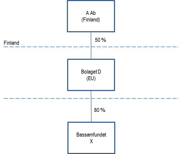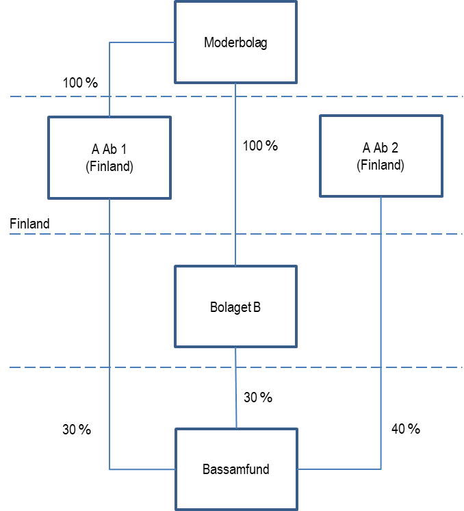 Enligt beslutet HFD 30.3.2003 liggare 2667 var avsikten att ett bolags verksamhet skulle omorganiseras så att bolagets sjöfraktsverksamhet skulle fortsättas av en underkoncern som skulle grundas och registreras i Nederländerna. Underkoncernen, som skulle stå under bestämmande inflytande av sökandebolaget, skulle bestå av moderbolaget och sju rederibolag, som vardera skulle äga ett fartyg. Avsikten var att verksamheten skulle bedrivas med fartyg som hyrs ut av de dotterbolag som helt ägs av moderbolaget för underkoncernen, så att underkoncernens moderbolag ingår befraktningsavtal, får inkomster genom dessa uppdrag och betalar hyra för fartygen till dotterbolagen. HFD kom i sitt avgörande fram till att det nederländska moderbolaget och dess helägda dotterbolag under dessa omständigheter skulle bedriva rederiverksamhet, och eftersom moderbolagets inkomster skulle inflyta huvudsakligen av denna verksamhet, kunde bolaget inte betraktas som ett bassamfund enligt bassamfundslagen.