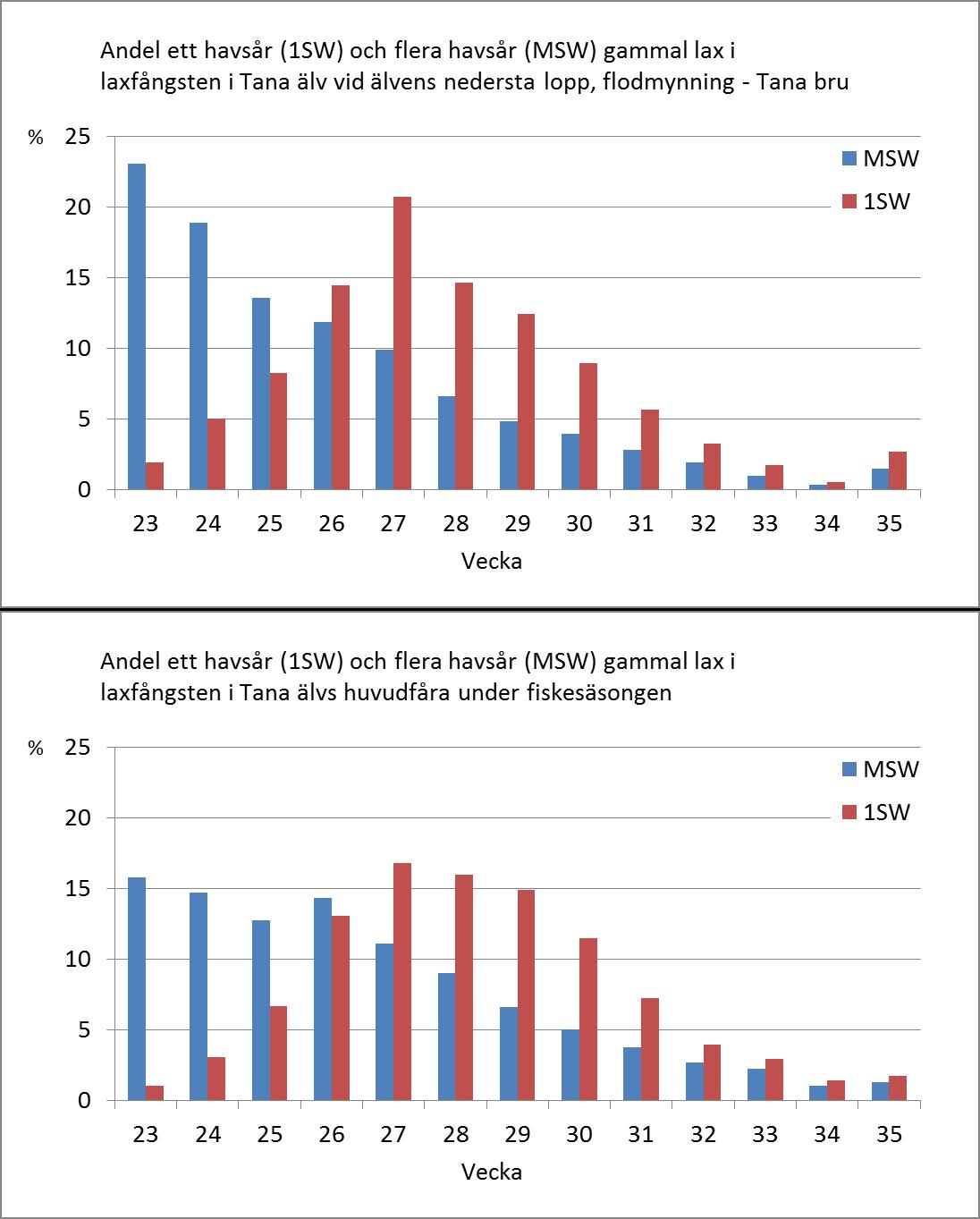 1) Konstatert fiskedødelighet i en bestand er over 5 % mer enn forutsatt.