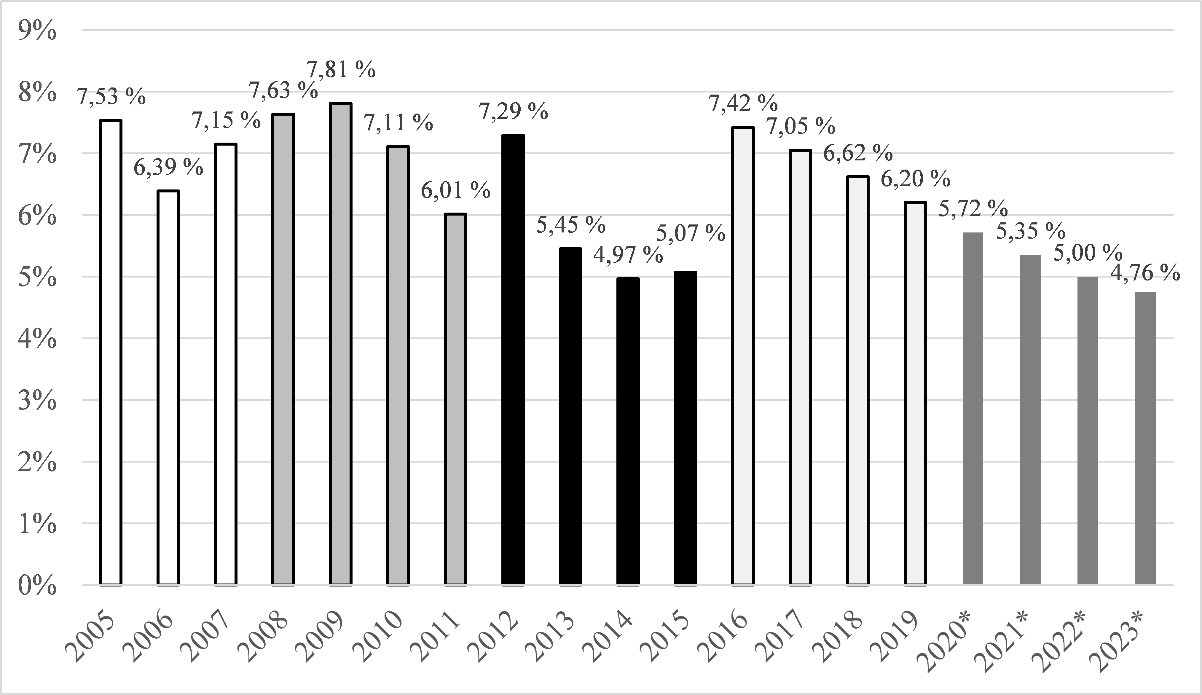 Utifrån den situation som beskrivs ovan kan det bedömas att en eventuell sänkning av den övre gränsen för den maximala höjningen bör hållas relativt måttlig. Dessutom ska en övergångsperiod reserveras för utjämning av det underskott som uppkommit innan ändringen trädde i kraft under den tillsynsperiod som upphörde vid utgången av 2019.