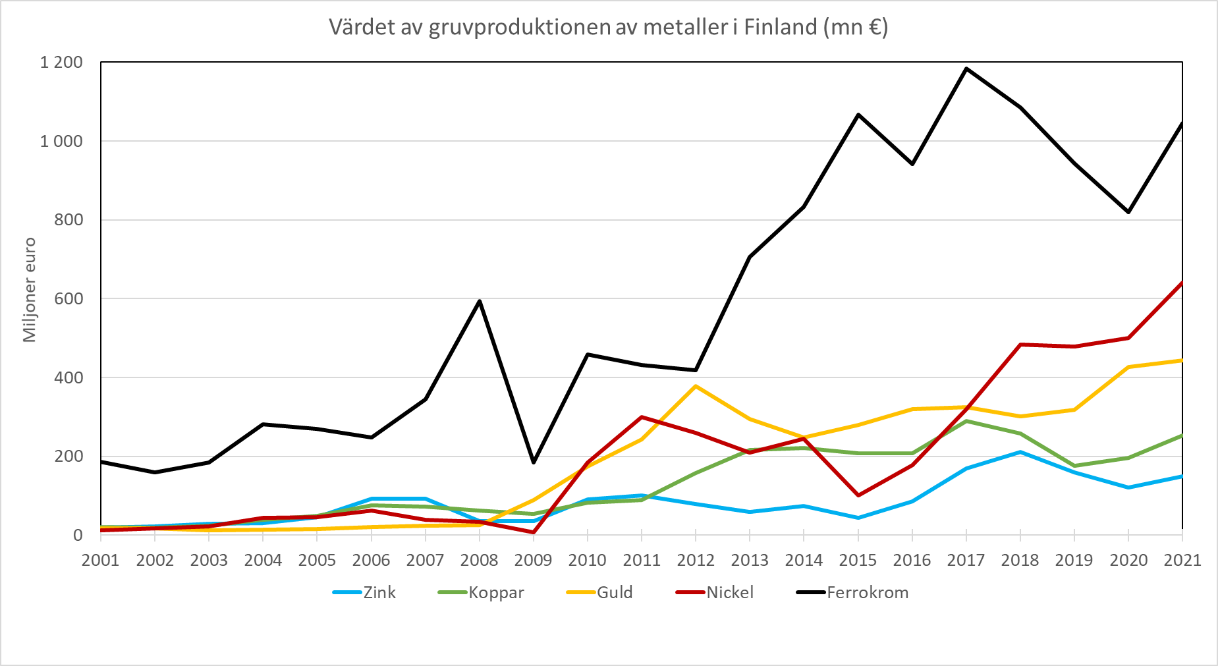 Bilagan. I bilagan till lagen finns det en uttömmande bestämmelse om de metallmalmer som beskattas enligt värde. Även om de gruvmineral som nämns i bilagan är grundämnen som framställs av gruvmineral och inte alltid gruvmineral, benämns de gruvmineral. I bilagan ingår sådana metallmalmer som bryts ur finländsk mark. Metallmalmerna är guld, kobolt, koppar, krom, litium, nickel, palladium, platina, silver och zink. Metallernas kemiska tecken anges inom parentes.