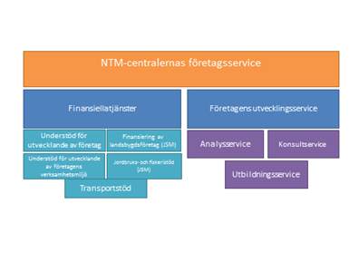 Inom arbets- och näringsministeriets förvaltningsområde kan företag genom NTM-centralerna få service för utveckling av företag och finansiella tjänster. Utöver arbets- och näringsministeriet styr jord- och skogsbruksministeriet inom statsförvaltningen den företagsservice som tillhandahålls av NTM-centralerna. En stor del av den finansiering av åtgärder som är avsedd för företagsutveckling inom båda förvaltningsområdena kommer från olika EU-fonder.