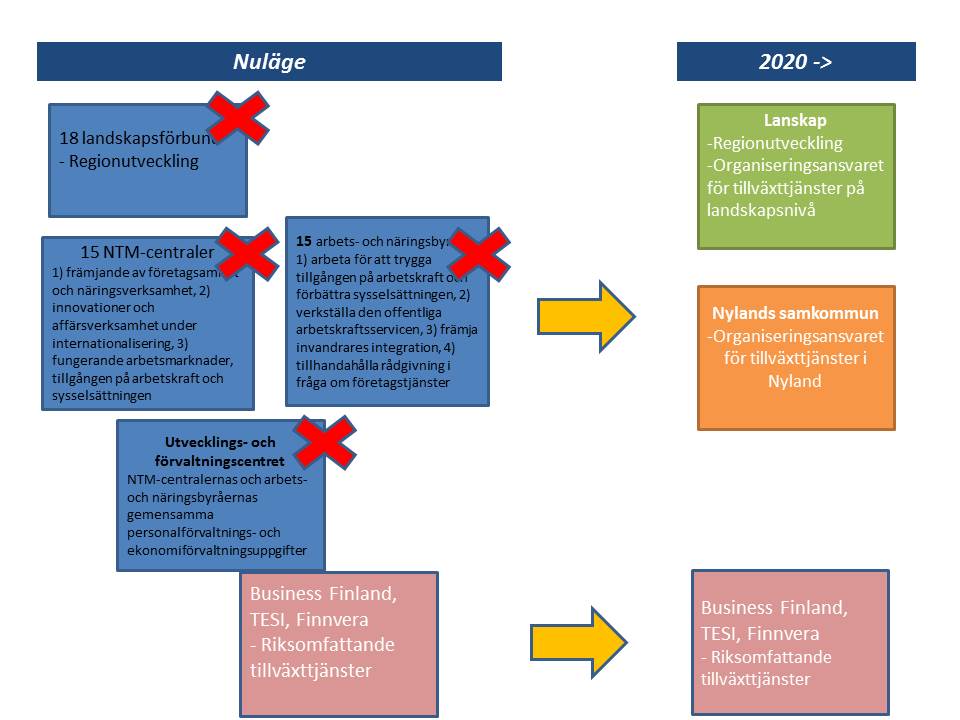 Reformen av regionutvecklingssystemet och tillväxttjänsterna hör till de strukturpolitiska re-formerna i regeringsprogrammet för statsminister Juha Sipiläs regering, vilka genomförs ge-nom att man inrättar nya självstyrande landskap. Inom landskapsreformen som helhet överförs till landskapen uppgifter som hör till närings-, trafik- och miljöcentralerna (NTM-central), arbets- och näringsbyråerna, regionförvaltningsverken, landskapsförbunden och kommunerna. Landskapsreformen är bland de största reformer av förvaltningen och verksamhetssätten som gjorts i Finland. Landskapsreformen berör hundratusentals människors arbete och tjänster som används av alla medborgare. Ändringarna gäller också finansieringen, styrningen och beskattningen av social- och hälsovården.