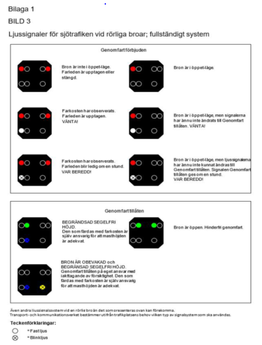 Förfaranden som ska iakttas i trafik längs kanaler och via rörliga broar