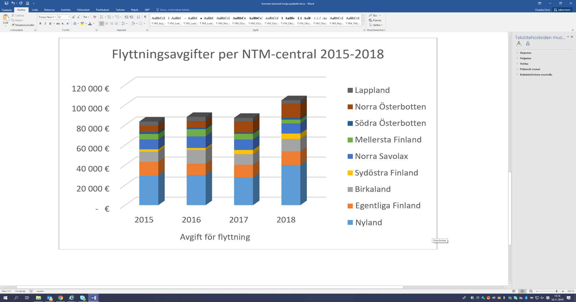 Tabell 2: Flyttningsavgifter per NTM-central 2015–2018